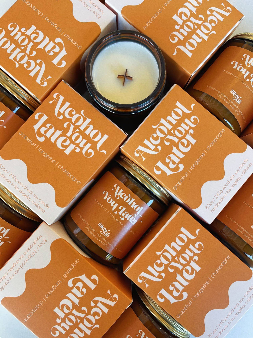 Notes of tangerine, grapefruit, & mimosa. 8.5 oz all-natural soy candle with a wood wick. Approximately 50-60 hours of burn time.