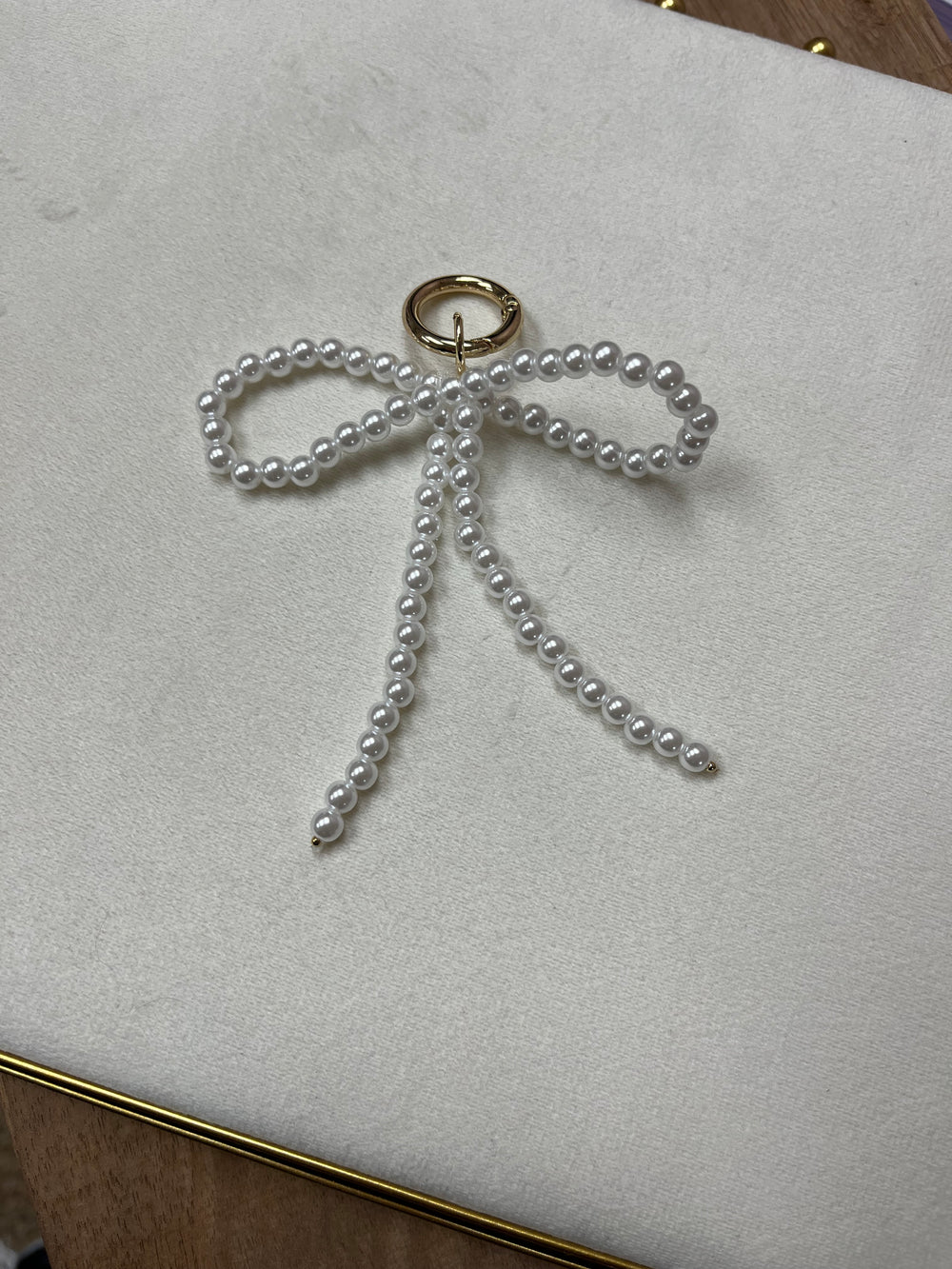 Transform your purse into the ultimate accessory with our Pearl Bow Bag Charm! With its feminine bow shape and elegant faux pearls, you'll add a charming touch to any purse, giving off chic girly vibes. Give your favorite purse a stylish upgrade!