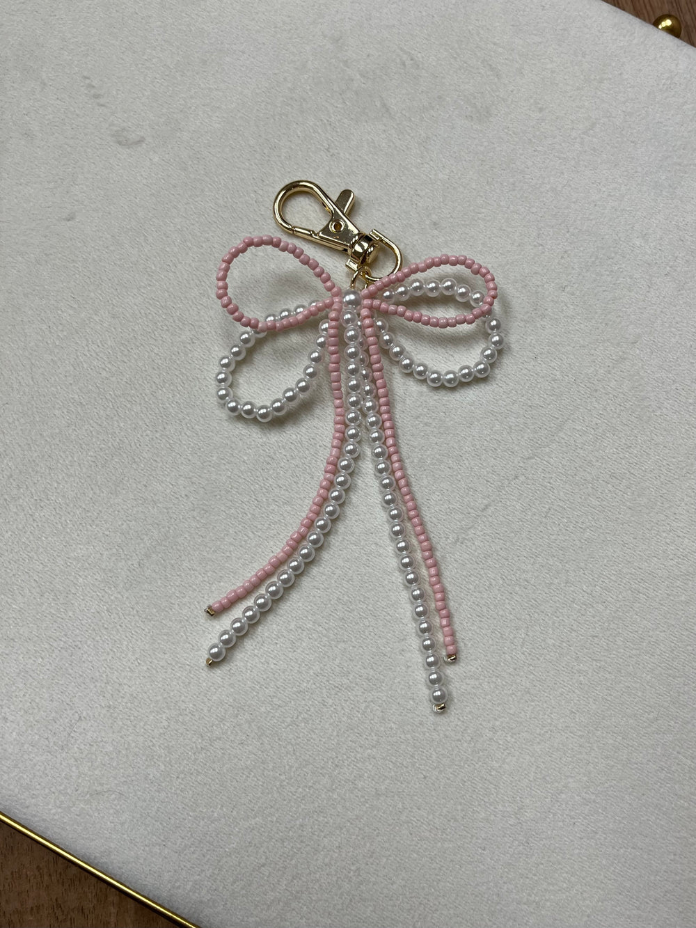 Get ready to add a pop of color and charm to your bag with our Pink and Pearl Bow Bag Charm! With pretty pink beads and faux pearls, this detachable charm brings adorable and girly vibes wherever you go. Perfect for anyone looking to add a playful touch to their style!