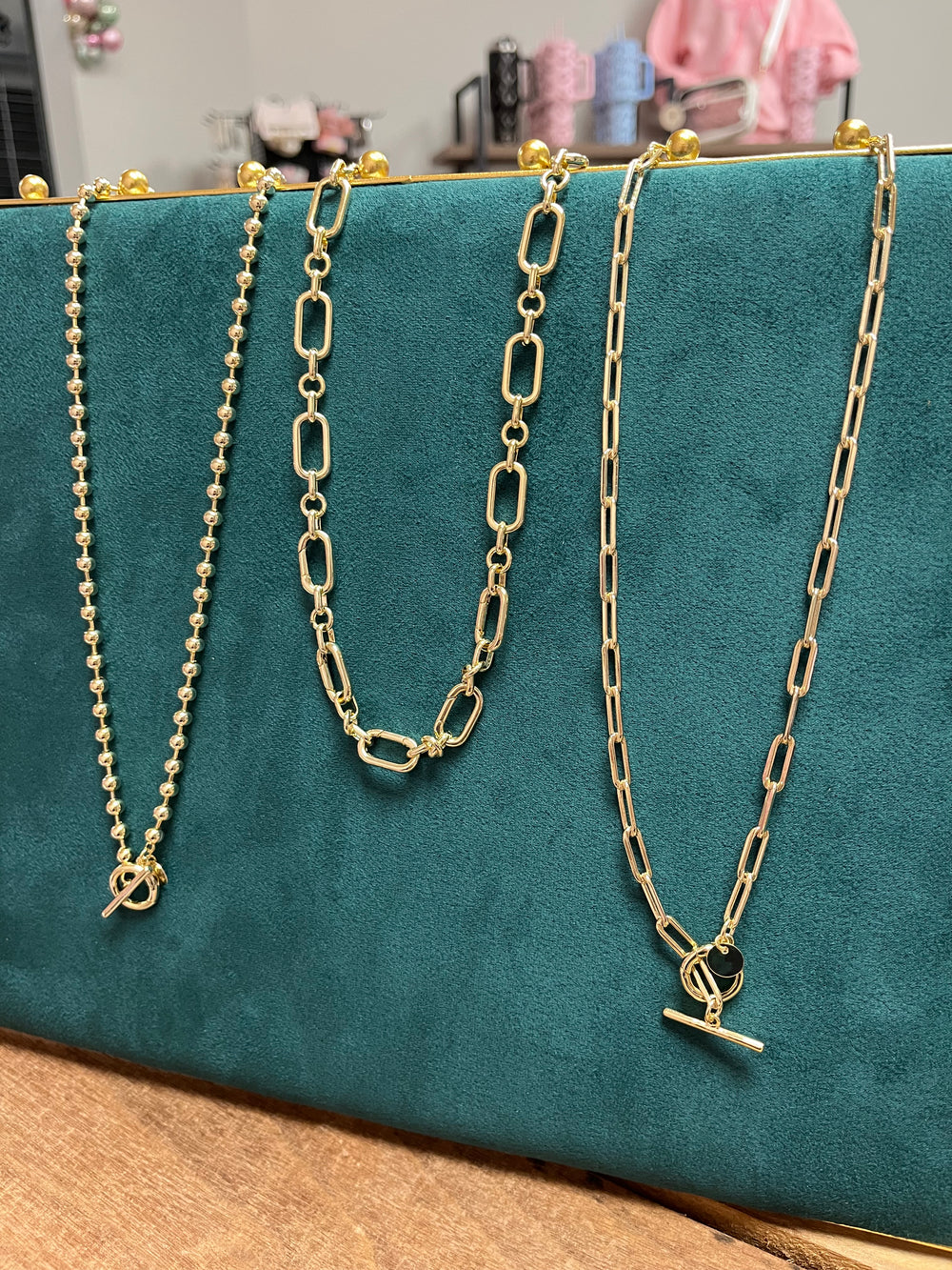 Level up your jewelry game with this chic and versatile paperclip charm necklace! The toggle clasp adds a unique touch, and you can mix and match charms to create your own unique style. Wear it alone for an understated look or add your favorite charms for a personalized touch.