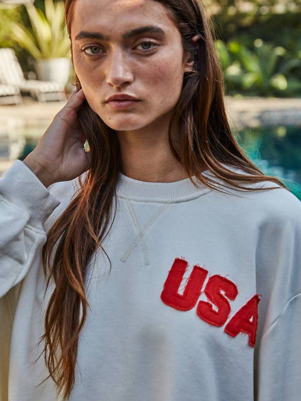 Get ready for some good old American fun with our USA Patch Cropped Pullover! Made with 100% cotton for excellent quality, this classic crewneck pullover features a patriotic USA patch and a slightly cropped design with a raw hem look. Perfect for bonfires, picnics, lake weekends, and more, this pullover is sure to become your go-to for all your summer adventures!