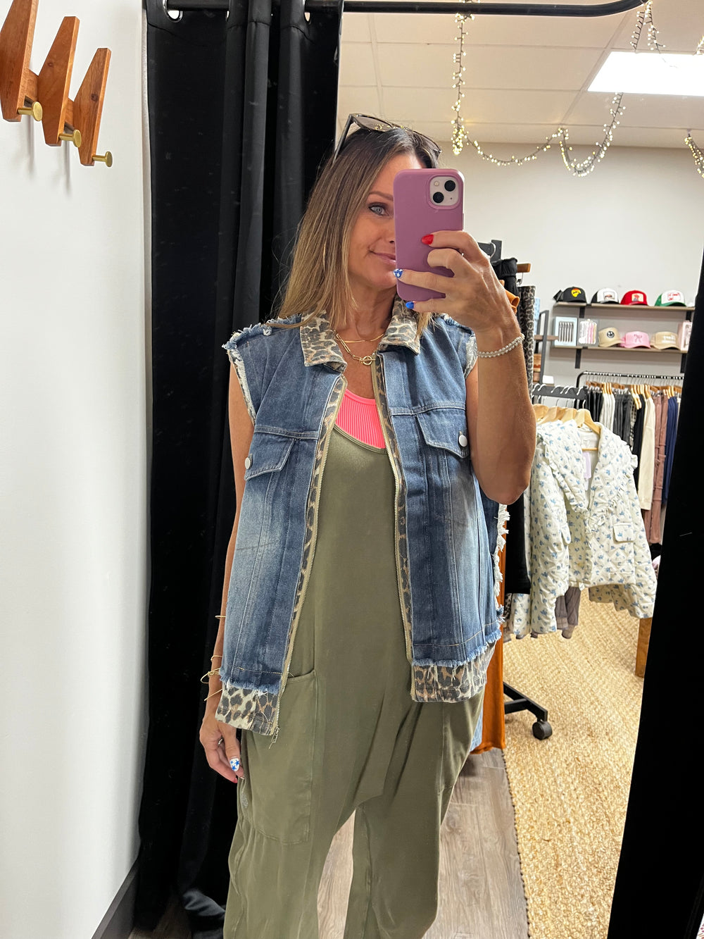 Elevate your everyday style with a wild twist! The Bibi Leopard Print Denim Vest is the ultimate layering piece designed for the modern woman who wants to look effortlessly cool. Whether you're a busy mom on the go or a trend-savvy teen, this vest delivers a unique edge to any outfit. The classic denim and bold leopard print create a look that is both timeless and perfectly on-trend for 2025. I'm wearing a size S at 5'7" and love the way it fits—it's a staple you'll find yourself reaching for again and again.