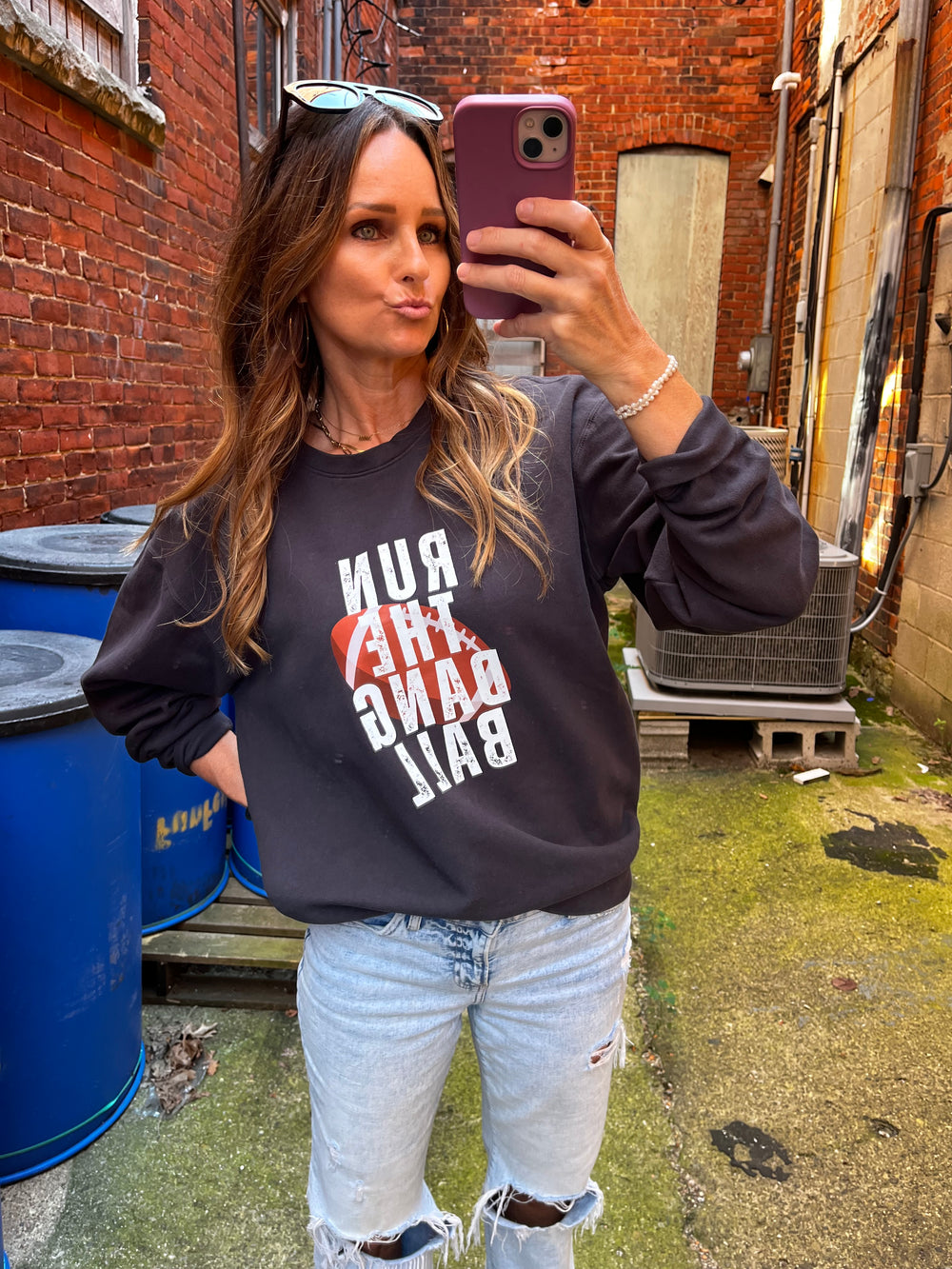 Take a stand in our Run the Dang Ball sweatshirt. This isn't just a sweatshirt—it's a statement. Made from 100% cotton Comfort Colors® fabric, it's a lightweight layer that feels as good as it looks. The bold white lettering on the classic black makes for an edgy look that lets everyone know where you stand. It's the perfect conversation starter for any football fan.