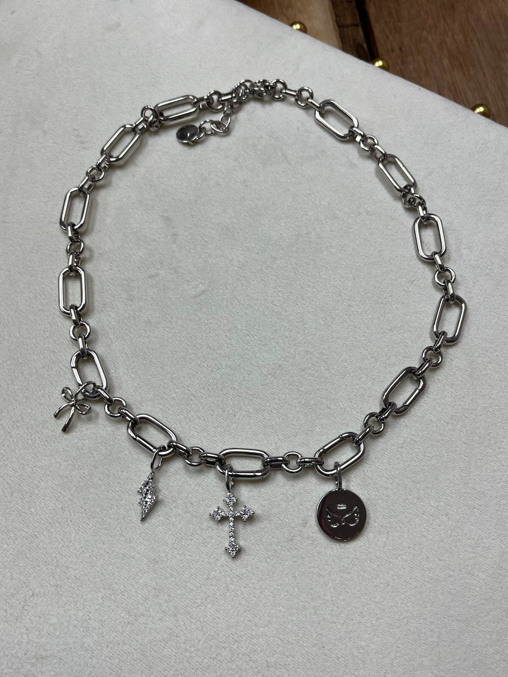 This necklace is perfect for any babe who loves a statement charm necklace! It features five hinges that open up, allowing you to conveniently switch out charms to create a completely different look. *Charms sold separately.*