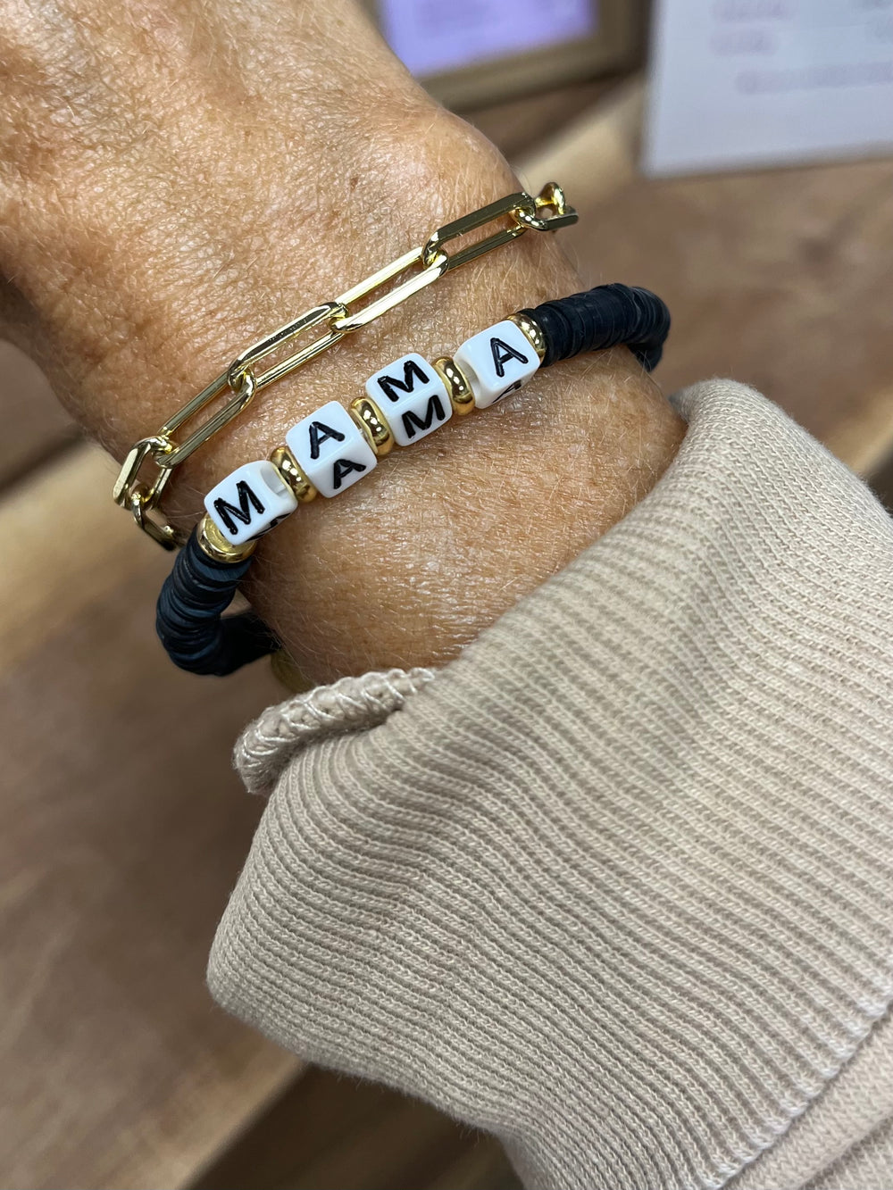 The perfect stackable clay disk bracelet for MAMA. Give as a gift to a special mom in your life, or snag for yourself!