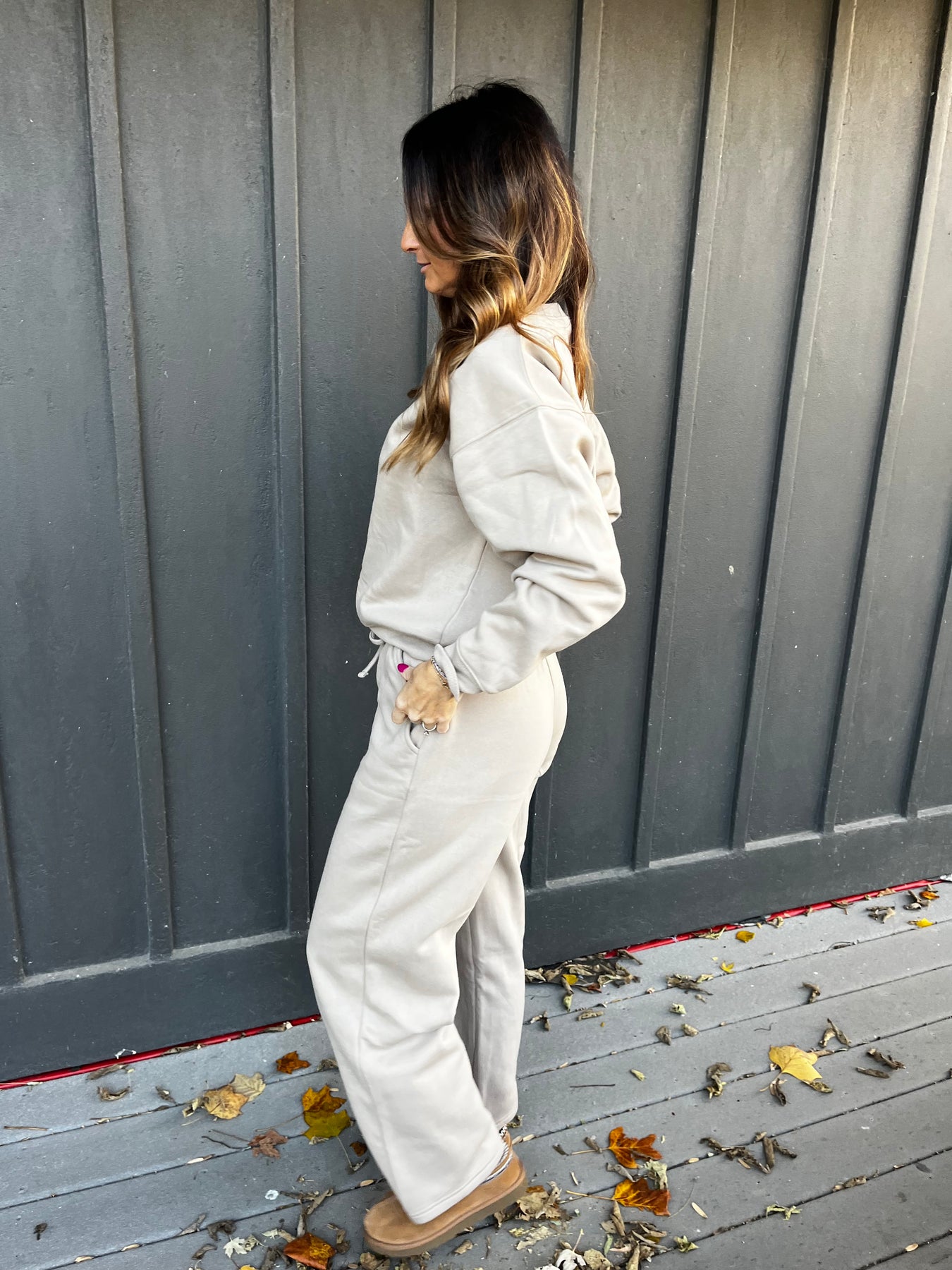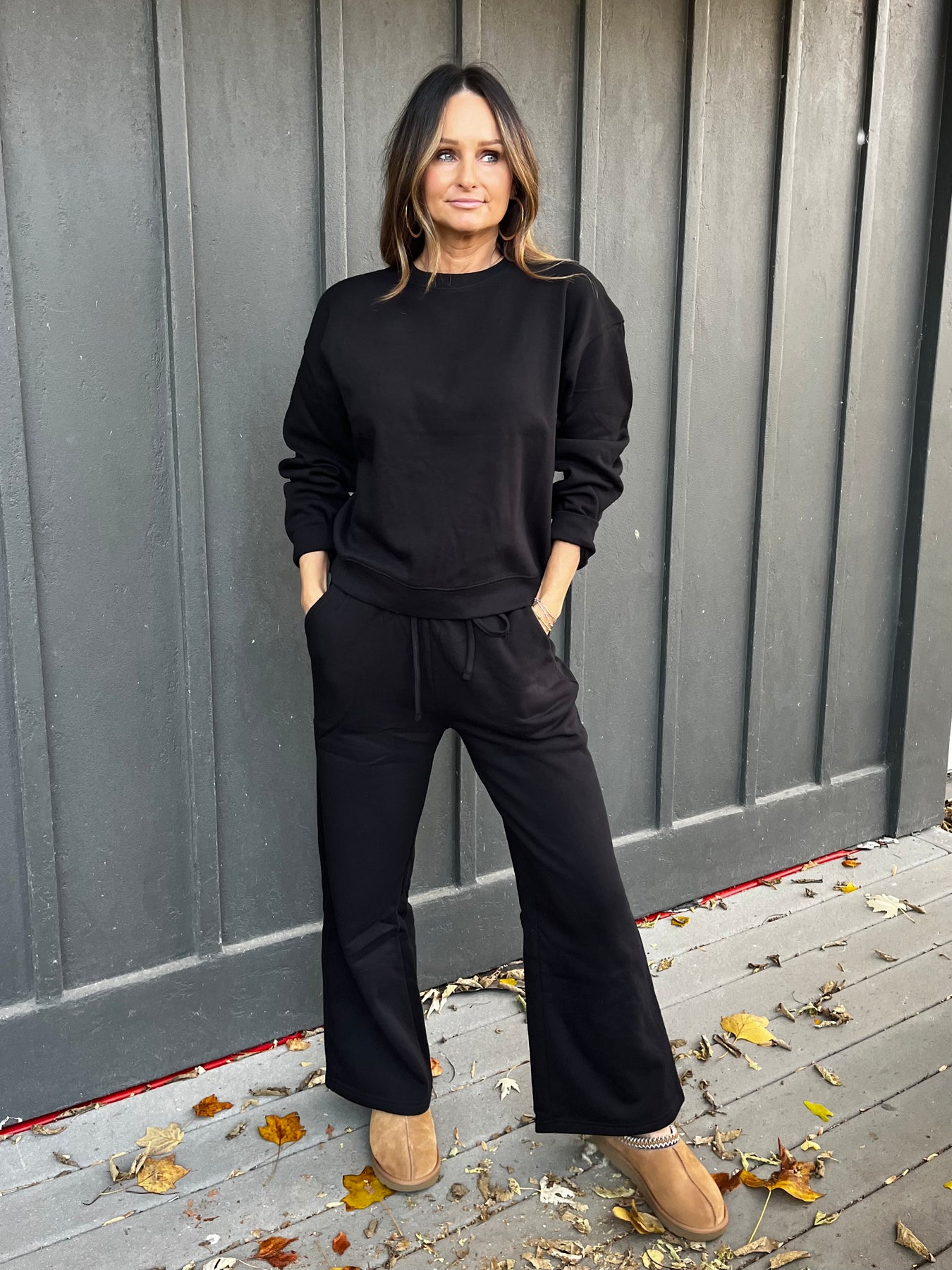 Styling Tip: Pair this set with a stylish puffer vest or a teddy coat and comfortable sneakers to transition your cozy loungewear look seamlessly for a quick coffee run or travel day.
